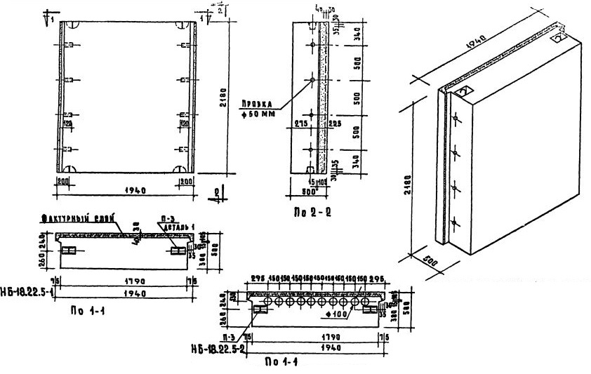 Стеновые легкобетонные блоки толщиной 50 см по Серии 1.133-1.