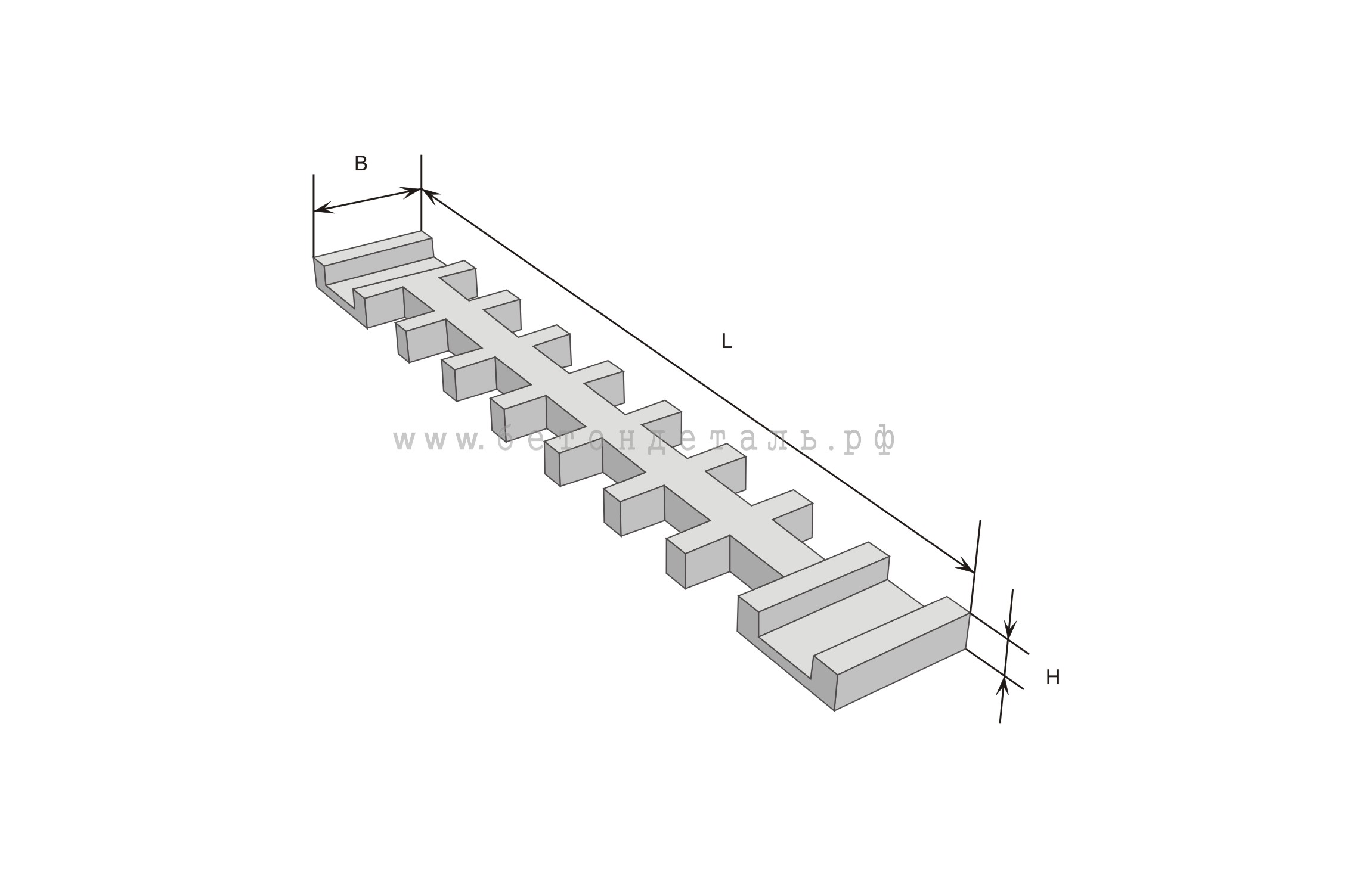 Шпалолежни ШЛ 1 – это железобетонные изделия, которые представляют собой монолитную балку, поперек которой расположены балочки длиной 1300 мм. На верхней плоскости шпалолежня находятся закладные детали для крепления к рельсам.